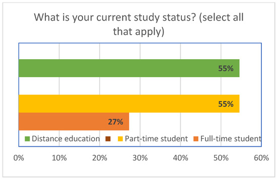 Figure 5 shows the study status of the survey respondents. Notably, most respondents were online and part-time students, congruent with the unit’s enrolment pattern.