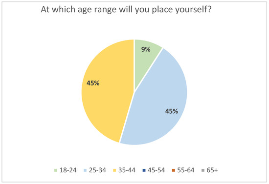 Most respondents were between 25 and 44 years of age (Figure 8). Thus, the respondents corresponded mainly to Gen X and Millennial generations [39].