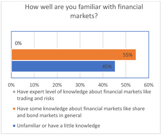 The survey aimed to conceptualise respondents’ information technology (IT) skills and financial market knowledge, especially to understand if these impact their experience. Interestingly, most respondents considered themselves expert IT users (Figure 9). By contrast, respondents generally did not believe that they had expert knowledge of financial markets, even though most indicated some knowledge in this area (Figure 10).