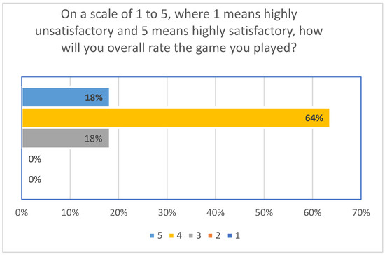 Figure 11 illustrates that most respondents deemed their game experience, overall, as satisfactory or highly satisfactory. Figure 12 reflects the respondents’ rating concerning the game’s functionalities and usability. Barring ratings on the visual outlook, ratings on other aspects were largely positive.