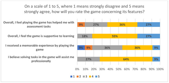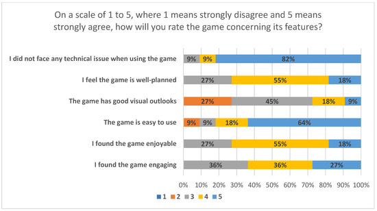 Overall, Figure 4, Figure 5, Figure 6, Figure 7, Figure 8, Figure 9 and Figure 10 reflect the diversity among students concerning the programme of study, demographic attributes and experiences. The following results illustrate respondents’ perceptions of the game experience and its impacts across various aspects.