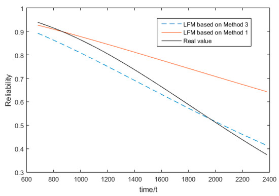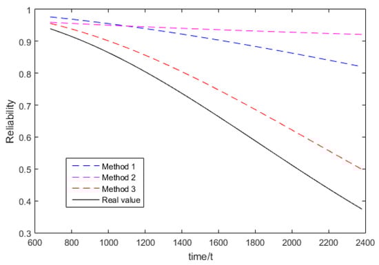In Figure 2, Method 1 is the hierarchical Bayesian estimation method [19] and Method 3 is the E-Bayesian reliability evaluation method proposed in this study. From the comparison results, it can be seen that the method proposed in this study is better than the hierarchical Bayesian method proposed in [19].