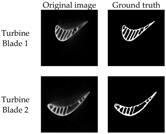 Figure 5 shows the example of the original CT slice image and its manually labeled ground truth for both turbine blades.