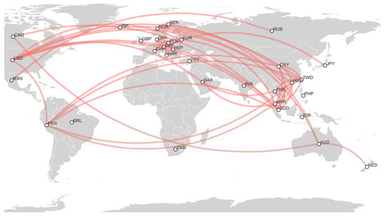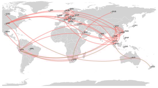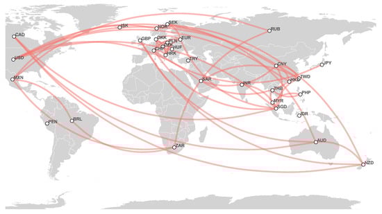 Estimated currency network based on 2018 to 2021 foreign exchange markets data.