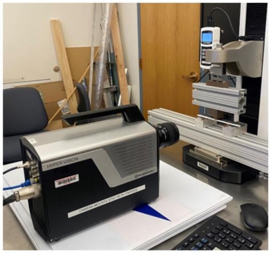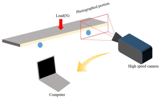 Recently, fiber-reinforced composite laminates have been widely used in the aerospace, mobility, and shipping industries due to their excellent specific strength, stiffness, and fatigue resistance [,,,,,,]. However, fiber-reinforced composite laminates fabricated by laminating the fiber layers have several defects at the interface between the laminated layers [,]. In the case of defects, delamination is a typical defect of laminated composites [,]. Delamination reduces the strength and stiffness of composite materials [,,]. Thus, it is very important to detect delamination in the performance of composite laminates [,,,,,,,]. Structural Health Monitoring (SHM) methods using the latest sensors, such as piezoelectric (PZT) sensors [,], carbon nanotube (CNT) sensors [], and fiber Bragg grating (FBG) sensors [], were proposed for detecting delamination in laminated composite structures. However, most sensors used in SHM measure data in a contact manner [,]. These sensors do not provide visual information about delamination, which can be a quick and instinctive sensor signal to detect delamination.