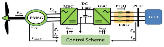 A compound method having repetitive control and fuzzy based PI control is proposed in [13] for power smoothening in a PMSG based GCWT system. Likewise, better THD with enhanced LVRT ability is achieved in a grid connected WECS using adaptive parameter for a neural-fuzzy hybrid control [15]. Using a feedback linearizing scheme, a sliding mode control is exploited in [16] to mitigate the sub synchronous oscillations under various grid disturbances in the connected wind energy system. In [17], authors applied virtual synchronous machine (VSM) on a PMSG-based WT network to analyze the small signal stability of the proposed controllers. Nevertheless, most of these control schemes fall short when it comes to requirements such as abundant memory, model accuracy, computation time, and big data for an effective learning process.