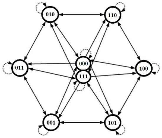 For a non-zero voltage vector from the previous cycle, it will either maintain its state or switch to an adjacent vector. On the other hand, if the switching voltage vector from the previous cycle has a zero state, the resultant switching could be any nonzero vector. Figure 3 displays the switching sequence of the optimized voltage vectors.
