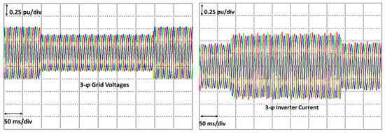 Grid Voltages and Inverter current under Symmetrical grid fault.
