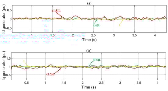 Parameter robustness analysis under inductance variation (a) d-axis stator current (b) q-axis stator current.