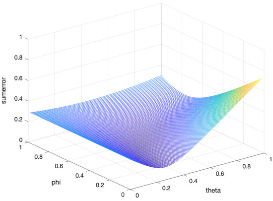 The optimal parameters and in convex combination and the sum of the corresponding error.