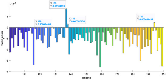 The mean return of the out-of-sample data range from the 101st asset to the 200th asset.