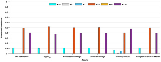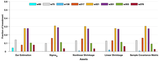 The assets’ weights of each estimation under the out-of-sample data for .