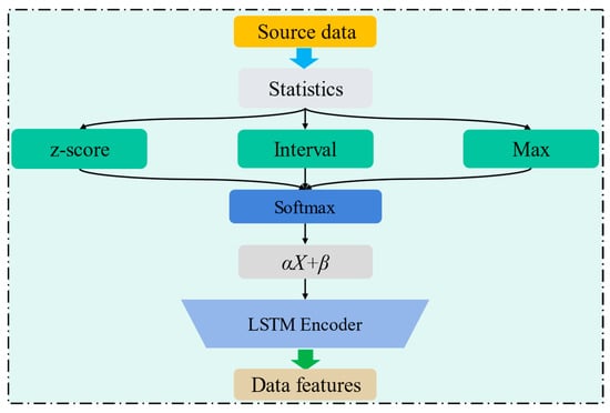 The schematic structure of the combined normalized encoder is shown in Figure 2. The combined normalization encoder integrates the combined normalization layer on top of the conventional encoder. It can combine the computational results of multiple normalizations by improving the effect of normalization processing and ultimately improving the feature encoding capability of the encoder. There are three normalization methods used in the combined normalization layer, including z-score [27], Interval [25], and Max [28], which are calculated as: