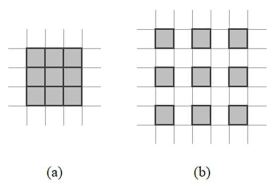 A schematic diagram of the atrous convolution at different expansion rates. (a) r = 1; (b) r = 2.
