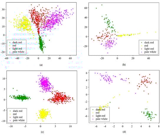 (iii) The structure of the feature extraction model is constructed with center loss to train a robust classification model to extract high-level features of tongue colors. The results show that the accuracy of tongue image resolution is significantly improved after using the center loss function.