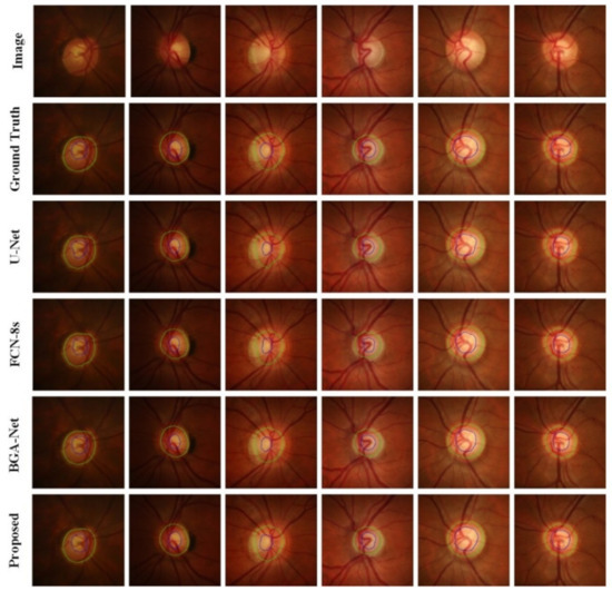 - Luo, L.; Xue, D.; Pan, F.; Feng, X. Joint optic disc and optic cup segmentation based on boundary prior and adversarial learning. Int. J. Comput. Assist. Radiol. Surg. 2021, 16, 905–914. [Google Scholar] [CrossRef]