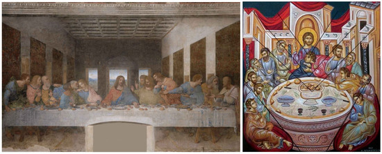 The Last Supper. Left: A modern painting that corresponds to the set of incident elements. Right: A traditional icon that corresponds to a nested structure.
