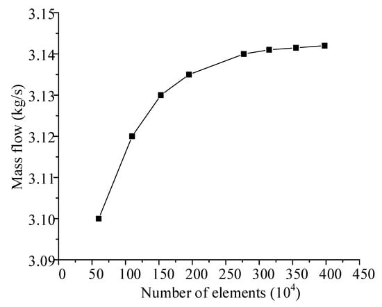 It can be seen from Figure 3 that when the number of elements exceeds 2.7 million, the mass flow at the outlet tends to be stable. In order to reduce the amount of computation and obtain reliable results, the total number of grids is determined to be approximately 2.7 million.
