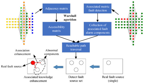 The remainder of this paper starts with a preliminary overview in Section 2. Then, Section 3 describes the two main methods of this study, including the association graph model based on knowledge and data fusion and the enhancement of component-associated knowledge based on the Warshall algorithm. The case studies in Section 4 show the process of the diagnosis of associated faults in power supply systems. The results indicate the priority of the methods in terms of accuracy under normal and missing-parameter situations. The paper closes with the main conclusions in Section 5.
