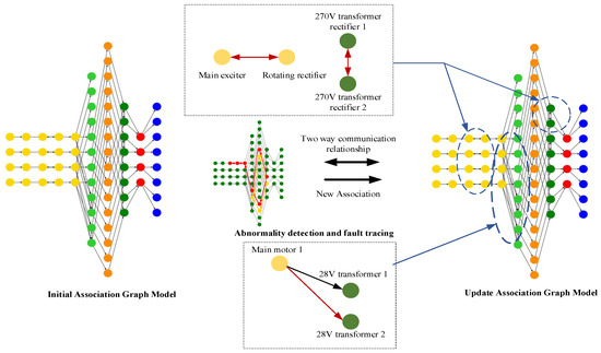 By analyzing the association between components in different fault modes, we obtain the association diagram model of the power supply system in different states. Meanwhile, the actions of various power controllers inside the power supply system can affect or block the propagation of fault signals, so the association of components in fault states may occur outside the physical structure. Therefore, it is necessary to combine the associated fault states together.