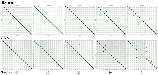 In this paper, the training set and the test set are processed for parameter loss at the same time. With 40 groups of samples as the training set and 10 groups of samples as the test set, the deep residual shrinkage network model and CNN model are constructed and trained. The results of the confusion matrix are shown in Figure 18.