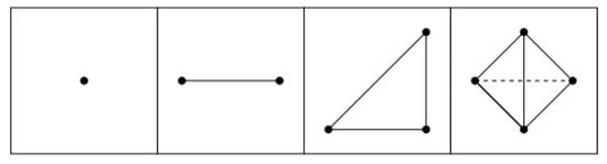 A 0-simplex is generated by one point, a 1-simplex is generated by two points, a 2-simplex is generated by three points, a 3-simplex is generated by four points, …, an n-simplex is generated by (n + 1) points (see Figure 9).