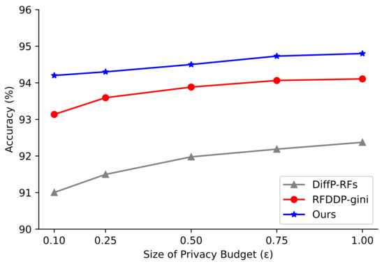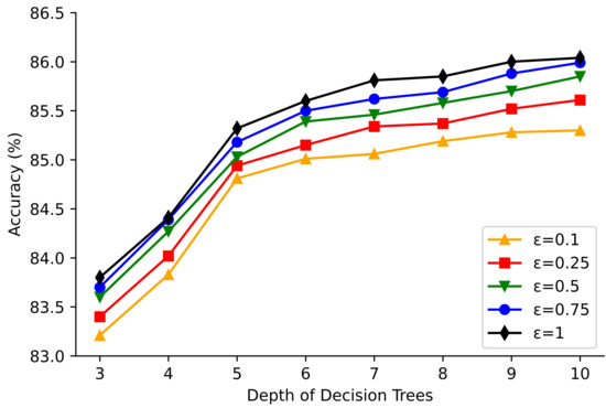 The privacy budget is a measure of how much noise is added and a measure of the strength of data privacy. As the privacy budget increases, the weaker the privacy of the data, the stronger the classification accuracy of the algorithm. In the decision tree model, as the depth of tree increases, the decision tree becomes more branchy, dividing the dataset to a finer degree, and the division becomes more accurate. The performance of the model is affected by the privacy budget and the depth of the decision tree.