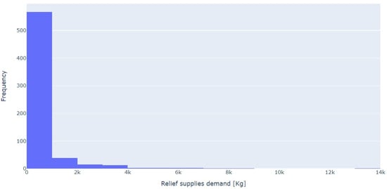 The data employed for this study include the aggregated demand in kilograms of relief supplies in the municipalities of Sao Paulo from 2015 to 2020. The data set was constituted by 443 registers with the name of the municipality, the year of the event and the amount of the demand. All years that each municipality did not require relief supplies were considered as demand equal to zero. From the 645 municipalities of the state, only 161 needed supplies at some point in the five years. These data were obtained from the Coordenadoria Estadual de Proteção e Defesa Civil do Estado de São Paulo (CEPDEC-SP), the Sao Paulo Civil Defense Coordination.