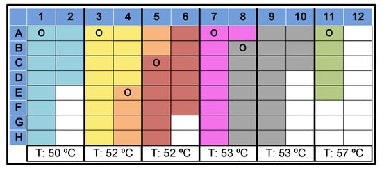 Although all these steps are essential in the Sanger method, this paper focuses on the PCR technique (Kary B. Mullis: https://www.mayoclinicproceedings.org/article/S0025-6196(11)62225-8/fulltext, accessed on 16 November 2022). The polymerase chain reaction is a method for amplifying DNA to generate millions of copies of one or several pieces of DNA. To perform this reaction, the DNA samples accompanied by chemical reagents are deposited into PCR plates. Then, the plates are placed into thermocyclers (A thermocycler, which is also known as a thermal cycler, is a laboratory machine that allows several temperatures to be set in a block of a plate), which heat the wells up to the reaction temperature of the chemicals. It should be noted that, depending on the DNA fragment to be replicated, the samples must be mixed with a specific reagent and processed at a certain temperature. Moreover, the temperature at which the samples will be processed will also play a key role in determining the position of the samples into the plates.