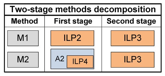 The general structure is simple enough to be understood at a glance; the complexity lies in the choice of the best method to solve each stage. Below, the two-stage method is described into detail, as well as the different approximations used to solve it. Figure 5 shows the decomposition of the different methods.