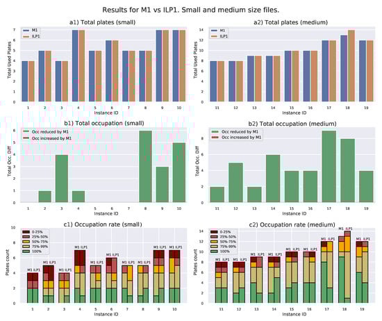 Figure 9. Comparison of M1 and ILP1 on small and medium size files.