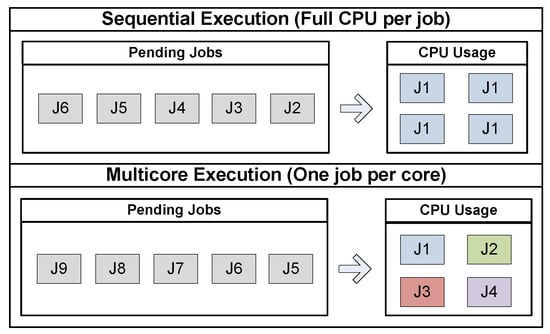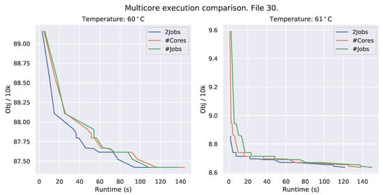 Figure 14. Evolution of the objective function for different multicore approaches.