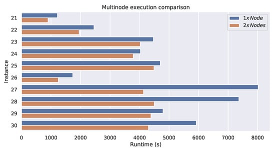 Figure 17. Second stage execution time comparison, depending on the first stage solver.
