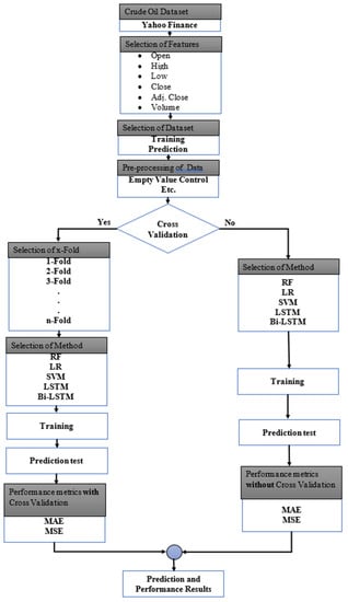 Crude oil is a significant energy source in the world []. The changes in crude oil prices have an important impact on the economic activities of countries all over the world. COVID-19 is a terrible disease, which quickly spread and heavily struck the world economy, health, and human life []. During this period, the crude oil price fluctuates greatly due to the global effects of the COVID-19 pandemic and Russia–Ukraine war. The severity of this fluctuation will increase as the supply and demand for oil and petroleum products change. Under this situation, predicting oil prices became crucial on a global scale.