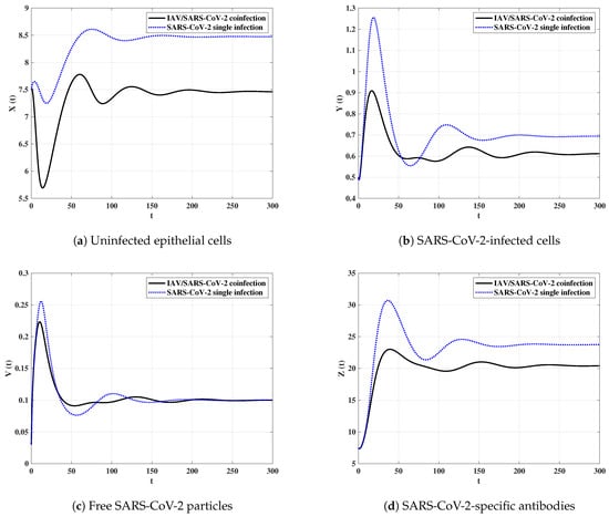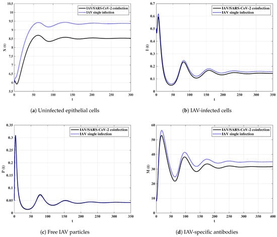 Elaiw, A.M.; Alsulami, R.S.; Hobiny, A.D. Modeling and Stability Analysis of Within-Host IAV/SARS-CoV-2 Coinfection with Antibody Immunity. Mathematics 2022, 10, 4382. https://doi.org/10.3390/math10224382