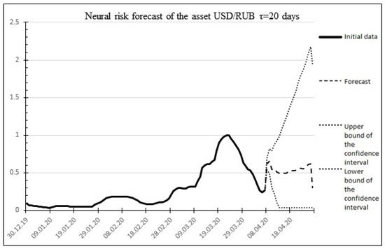 Figure 14 shows an example of the aggregate risk of the USD/RUB asset and the statistics of the forecast and actual risk values for the USD/RUB asset. Percentage error: 6.79459%.