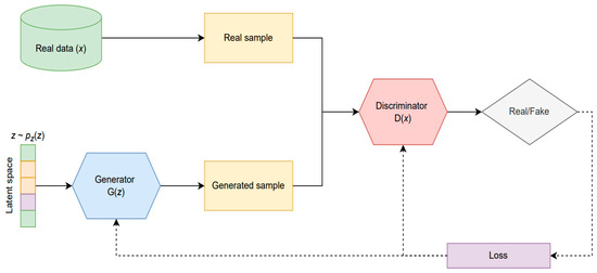 There are different techniques for generating new data; among the most prominent, we find variational autoencoders (VAEs) [36], denoising diffusion probabilistic models (DDPM) [37], and generative adversarial networks (GAN) [21]. In this work, we used GAN due to its ease of use.