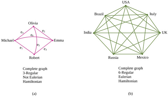 A graph G is a pair where V is a set of elements described as vertices and E is a set of edges [32]. The two vertices associated with an edge are called endpoints. If x = y, then the edge is considered as a loop. A vertex is isolated if it is incident with no edges. The graph G is simple if it has no loops and no two distinct edges have the same pair of ends. The graph G is called null graph when its edges set is empty. Graph H is named a subgraph of graph G if and the ends of an edge are the same as its ends in Denote as the degree of vertex x as well as the number of edges incident with