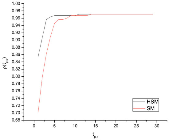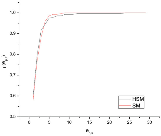 Performance profiles for the HSM and SM methods regarding the number of iterations metric.