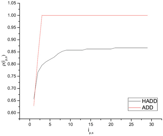 Performance profiles for the HADD and ADD methods regarding the number of iterations metric.