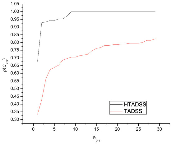 which presents the cumulative distribution function. In (30) parameter while is the set of problems.