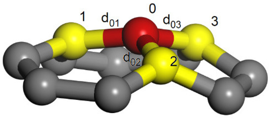 The definition of the interatomic distances doi, between a three-coordinated node (index, I = 0) and its neighboring nodes (I = 1–3).