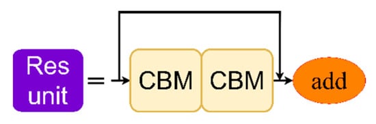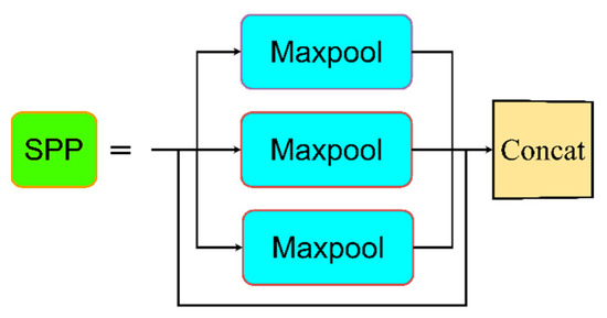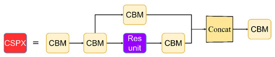 In this study, we use YOLOv4 [21] for music genre classification based on the visual Mel spectrum. YOLOv4 was proposed by Bochkovskiy et al. and is composed of five modules, including CBM, CBL, Res unit, CSPX, and SPP. CBM is the smallest module in the network structure and consists of Conv + Bn + Mish activation function. CBL is similar in structure to CBM; as shown in Figure 2, the difference is that CBL uses the Leaky ReLU activation function, while CBL uses Mish as the activation function. Res unit is based on the residual structure in Resnet, so a deeper network can be constructed, as shown in Figure 3. CSPX is a network structure based on SCPNet, which consists of three convolutional layers and X Res unit modules, as shown in Figure 4. SPP is to combine 1 × 1, 5 × 5, 9 × 9, 13 × 13 maximum pooling layers at multiple scales, and link features of different kernel sizes together as output, as shown in Figure 5.