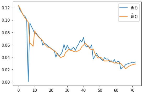 Based on Equations (15)–(18), we can easily derive the (t) and (t) of each day. The historical data from a certain period were given by X(t), R(t), 0 ≤t≤T− 1, then the corresponding (t), (t), 0 ≤t≤T− 2 can be measured [7]. With the above information, the regression model predicts the time-varying transmission and recovery rates.