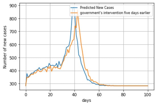 Predicted New Cases if the Government interventions were 5 days earlier.