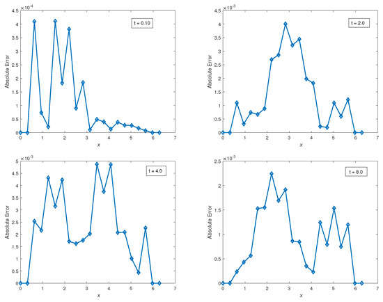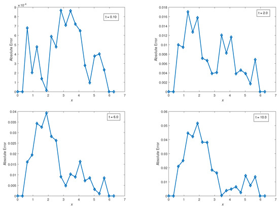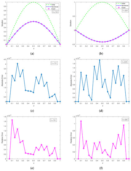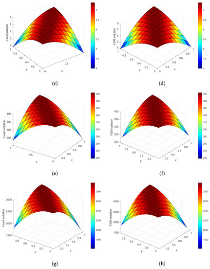 - We solve the following 2D non-homogeneous equation [43]with subject to the initial condition ; the boundary conditions are given by. The exact solution is . We used for this experiment.