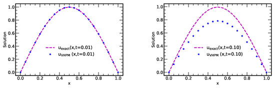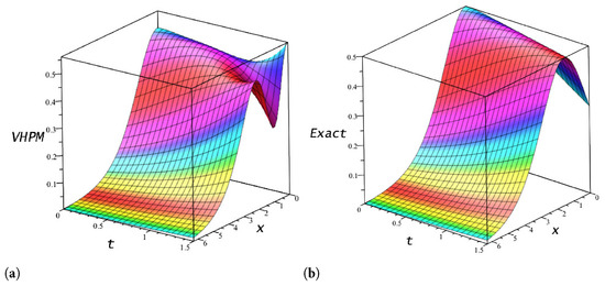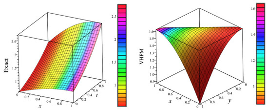 | x | t | Exact Solution | VHPM Solution | Absolute Error | Relative Error |