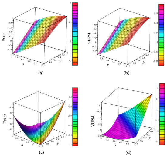 | t | x | y | Exact Solution | VHPM Solution | Absolute Error | Relative Error |