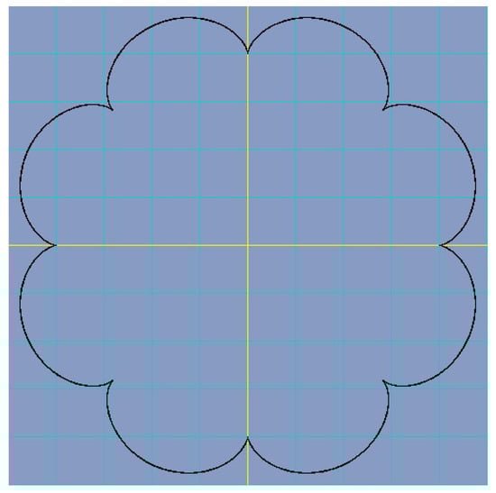 There exist several software systems dealing with plane geometry [7]. We mention the interactive geometry software Cinderella [8], a system designed many years ago (see http://www.cinderella.de/tiki-index.php (accessed on 15 November 2022)), but still in use and working well. Recently, GeoGebra became popular [9,10]; GeoGebra merges features of dynamic geometry and computer algebra (visit www.geogebra.org (accessed on 15 November 2022) for details). There also exists large software systems with advanced modules for geometry; among the most complex are Mathematica, Maple and Matlab. In all of them, it is possible to define the equations of a curve; however, none of them provides the possibility of dynamic homotopy and transformations of a curve depending on its parameters.