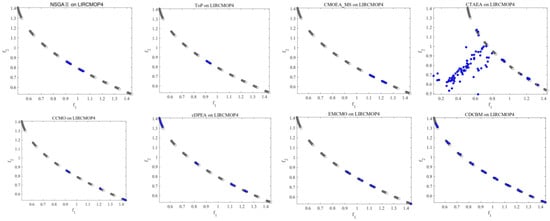 As shown in Figure 3, since the feasible region of LIRCMOP4 is only a discontinuous line segment, NSGA-II [6], ToP [14], CTAEA [8], CCMO [7], cDPEA [18], and EMCMO [20] all fall into local optima. However, only CDCBM found all discontinuous CPFs.